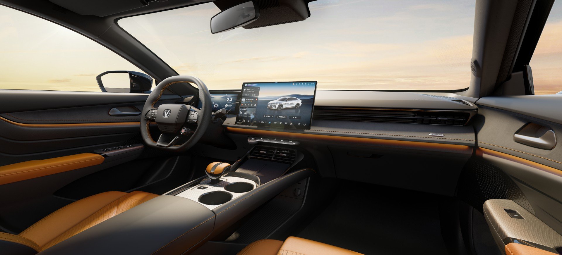 Brand New Changan UNI-V for Sale — comes standard with a sporty flat-bottom steering wheel, race-style bucket seats with contrast stitching, and two 10.3-inch screens. Its 2.0-liter turbocharged engine delivers 233 horsepower and a maximum torque of 390 N·m, offering a thrilling acceleration experience.
