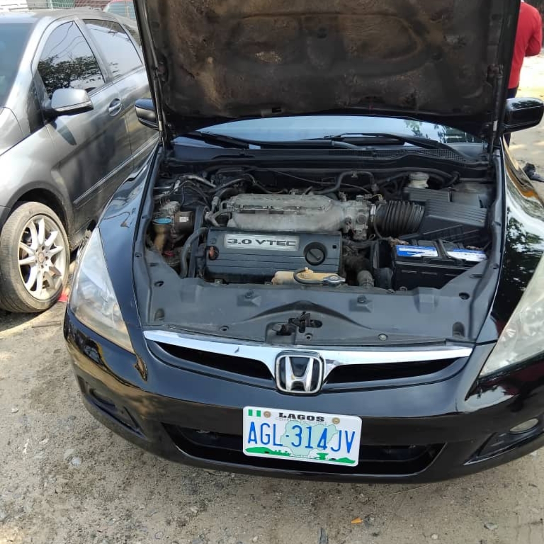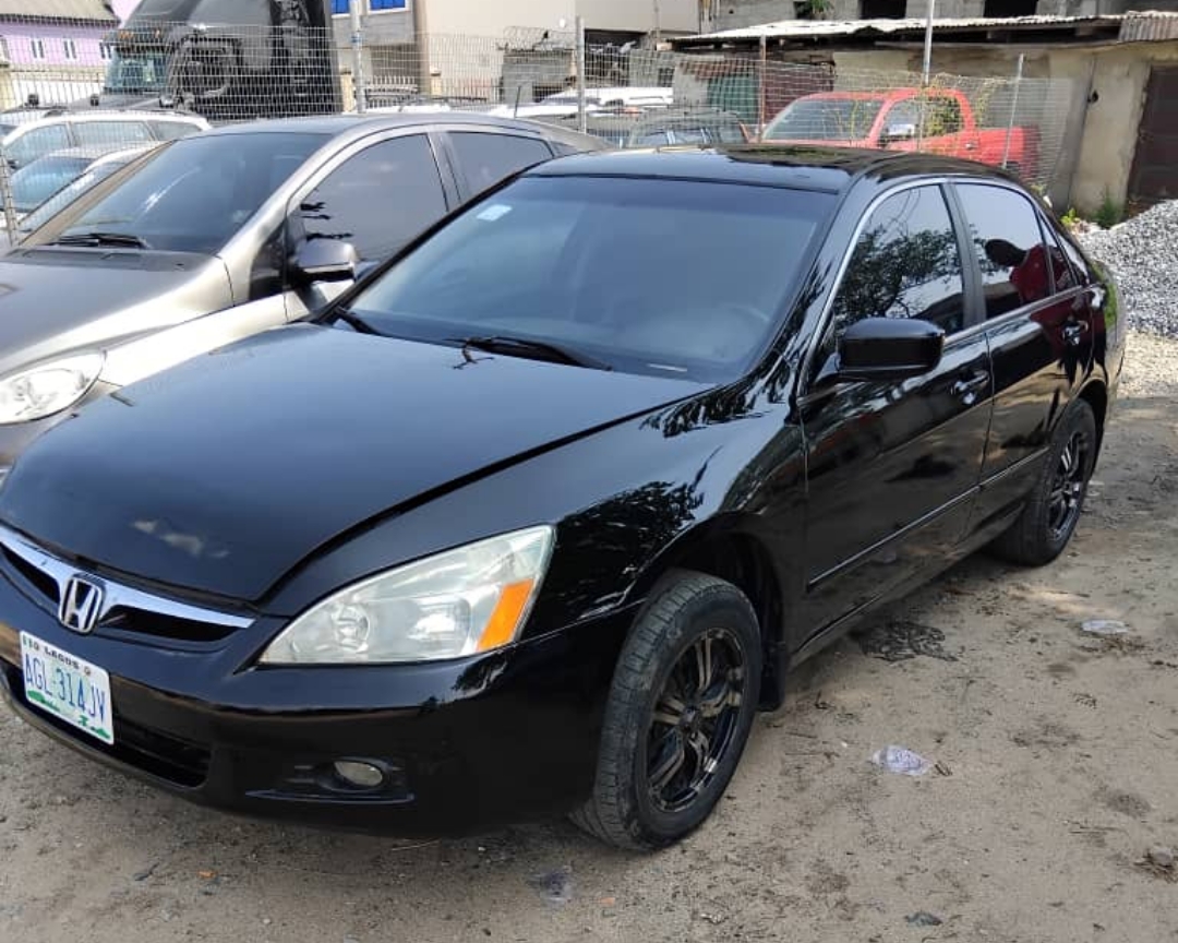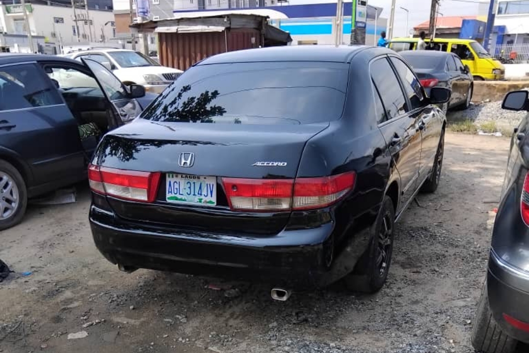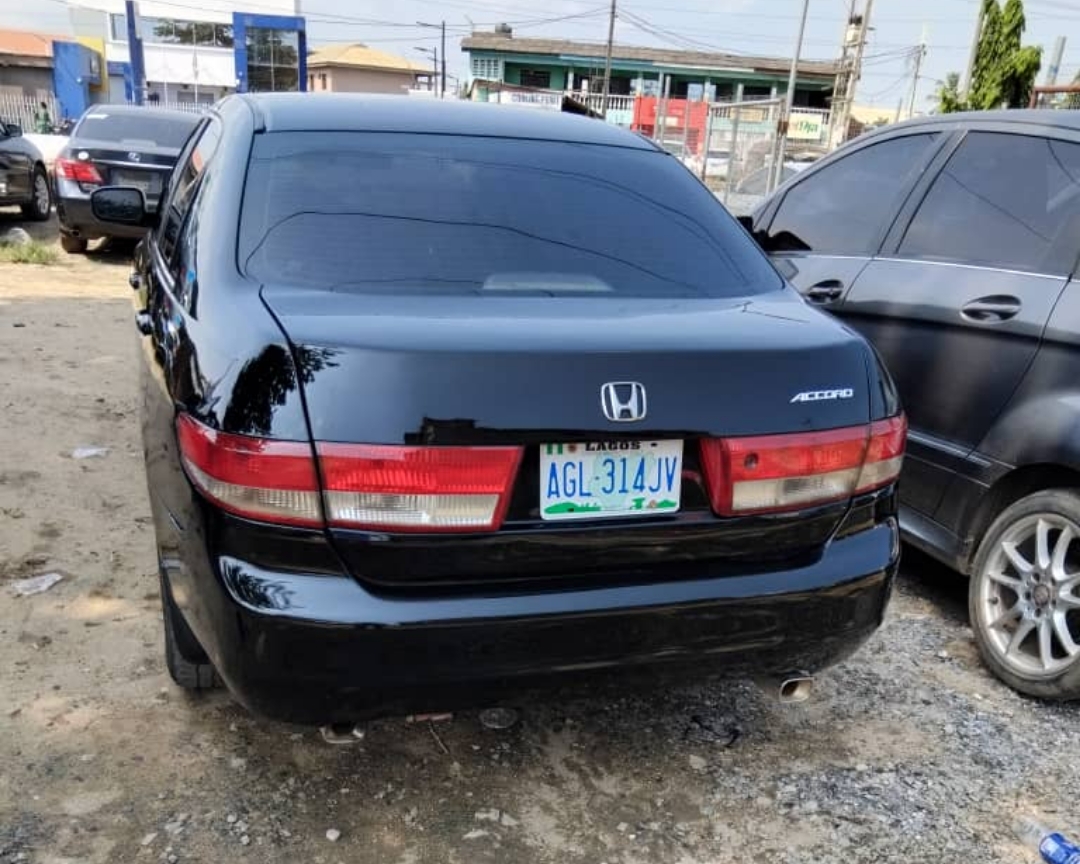 Registered 2004 Honda Accord EOD *Exterior: Black *Interior: Black *Automatic Gear *Leather seats *Fuel Economy *3.5L V6 Engine *Sound Engine & Gear *A/C chilling *Customs Duty *Location: Jakande Estate Isolo Lagos Price: N3m