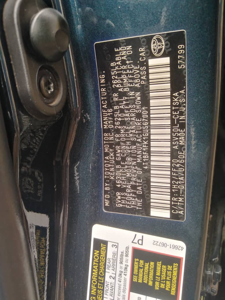 Neatly Used 2016 Toyota Camry for Sale In Abuja