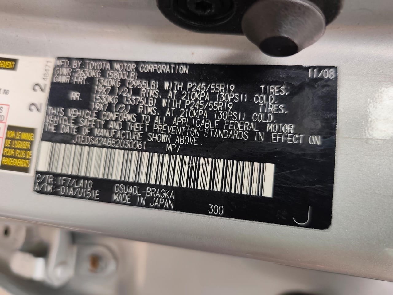 Toyota highlander 2009 Limited Edition. Foreign Used Keyless Ignition Switch Sunroof 3 Seater 16.5m